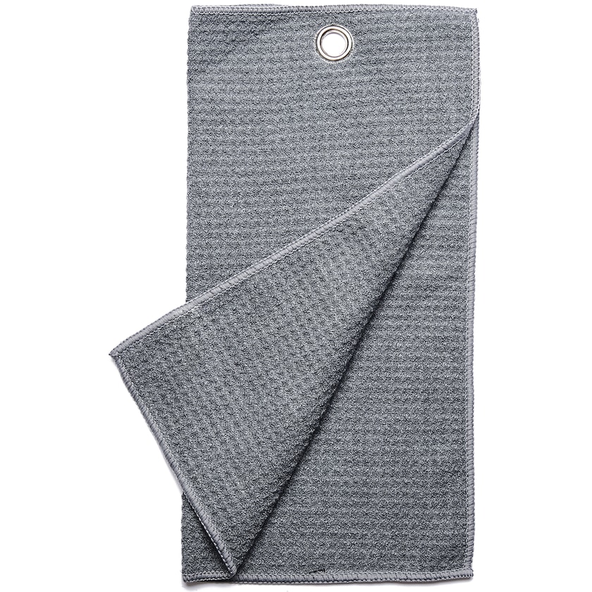 Serviette de golf 3 épaisseurs en microfibres. La serviette est équipé d'un mousqueton légèrement chromé (non visible sur la photo).