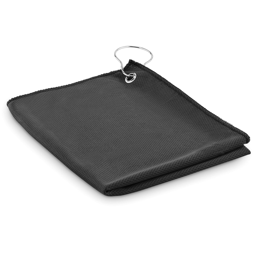 Serviette de golf écologique avec crochet. La Ballarat est fabriquée en rPET, c'est-à-dire en bouteilles PET recyclées. Un choix parfait pour vous qui souhaitez acheter une serviette de golf écologique personnalisée !