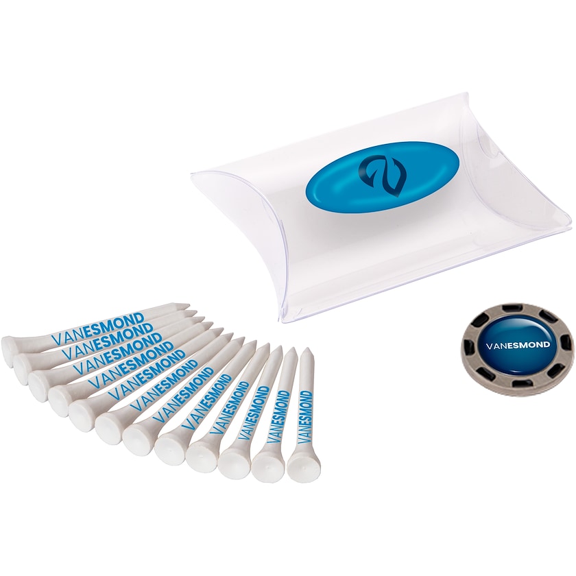 Set contenant 12 tees de golf de 70 mm et 1 bouton de marquage. Le prix de la personnalisation fait référence à une impression photo en quadrichromie sur l'emballage, le bouton de marquage et les tees de golf. Les 2 premières personnalisations sont placées sous une surface protectrice en époxy, pour une apparence haut de gamme. Un cadeau parfait pour le golfeur !