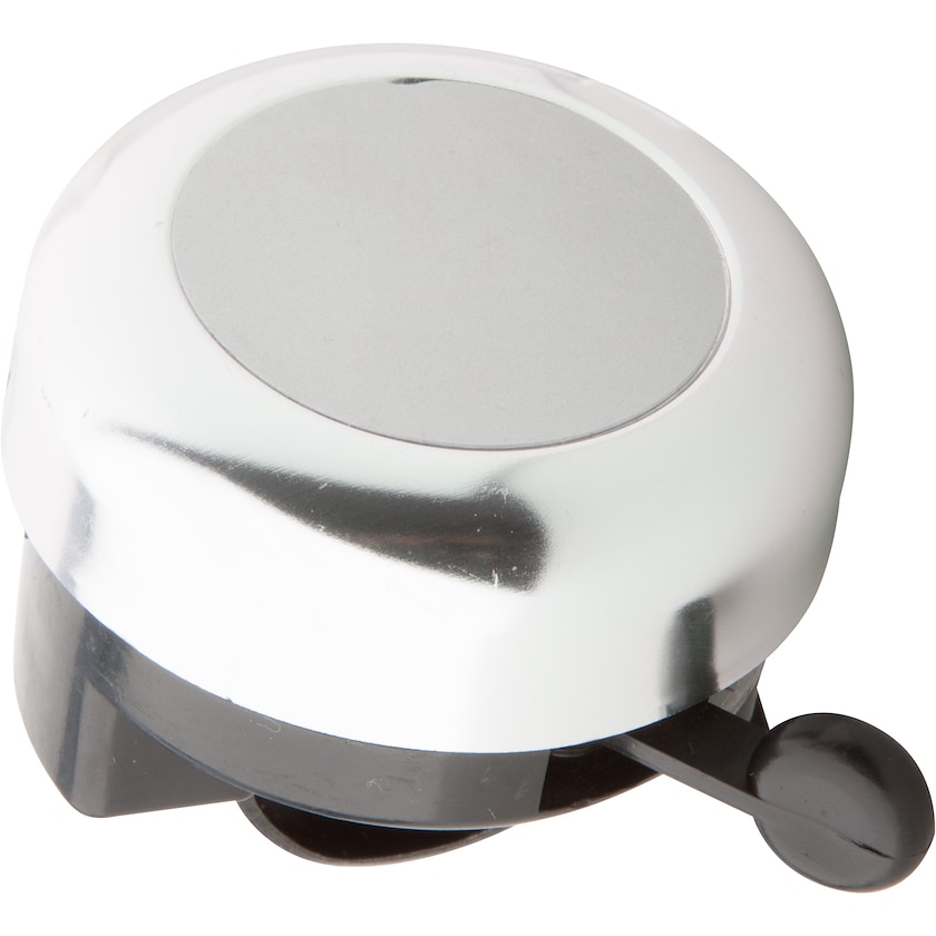 Sonnette de vélo en aluminium. Le marquage est effectué à l'aide d'une impression photo en quatre couleurs placée sous une surface protectrice en époxy.