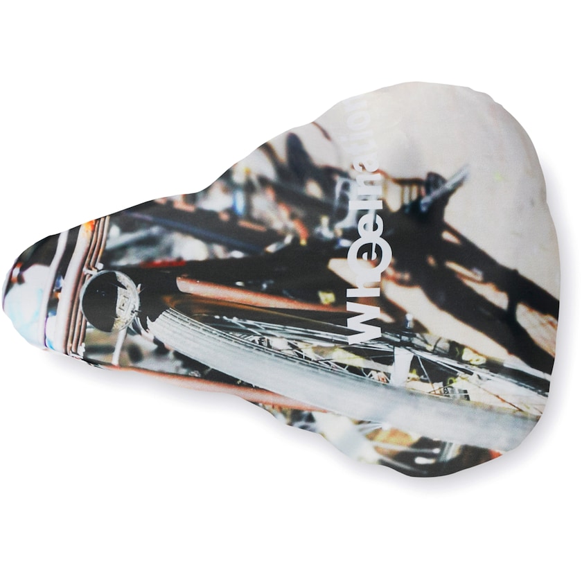 Housse de selle de vélo personnalisée écologique avec impression sur toute sa surface. La housse de selle est fabriquée en rPET, c'est-à-dire en bouteilles PET recyclées. La personnalisation est réalisée par impression photo en quadrichromie sur toute la surface de la selle. La bande élastique est cachée pour plus d'élégance. La quantité minimum de commande est de 250 unités. Ces dernières étant fabriquées sur mesure, le délais de livraison est un peu plus long que la normale.