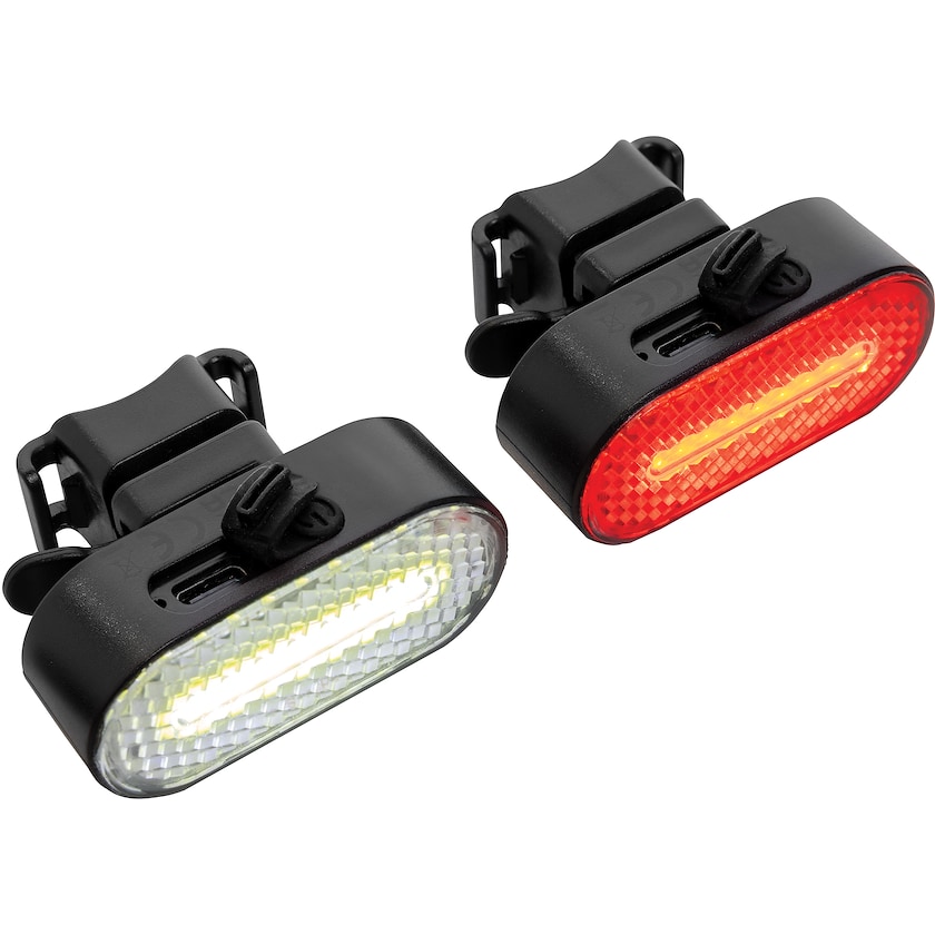 Feu avant et arrière rechargeable pour vélo. Les feux de vélo sont fabriqués à partir d'ABS recyclé. Ils se rechargent en une heure via un câble de type C et ont ensuite une autonomie d'environ 2,5 heures. Les lampes ont cinq modes d'éclairage. IPX étanche.