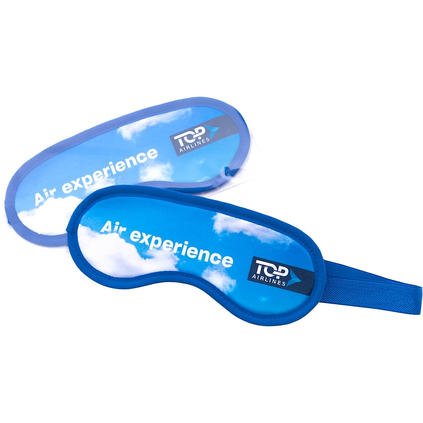 Masque de nuit avec impression 4 couleurs sur le devant. Le Macao est fabriqué dans des microfibres souples et livré dans un polybag recyclable. La microfibre composant les coutures et la bande élastique sont disponibles dans une variété de couleurs Pantone (voir image détaillée). Concevez votre propre masque de nuit! Un produit publicitaire parfait pour les agences de voyage.