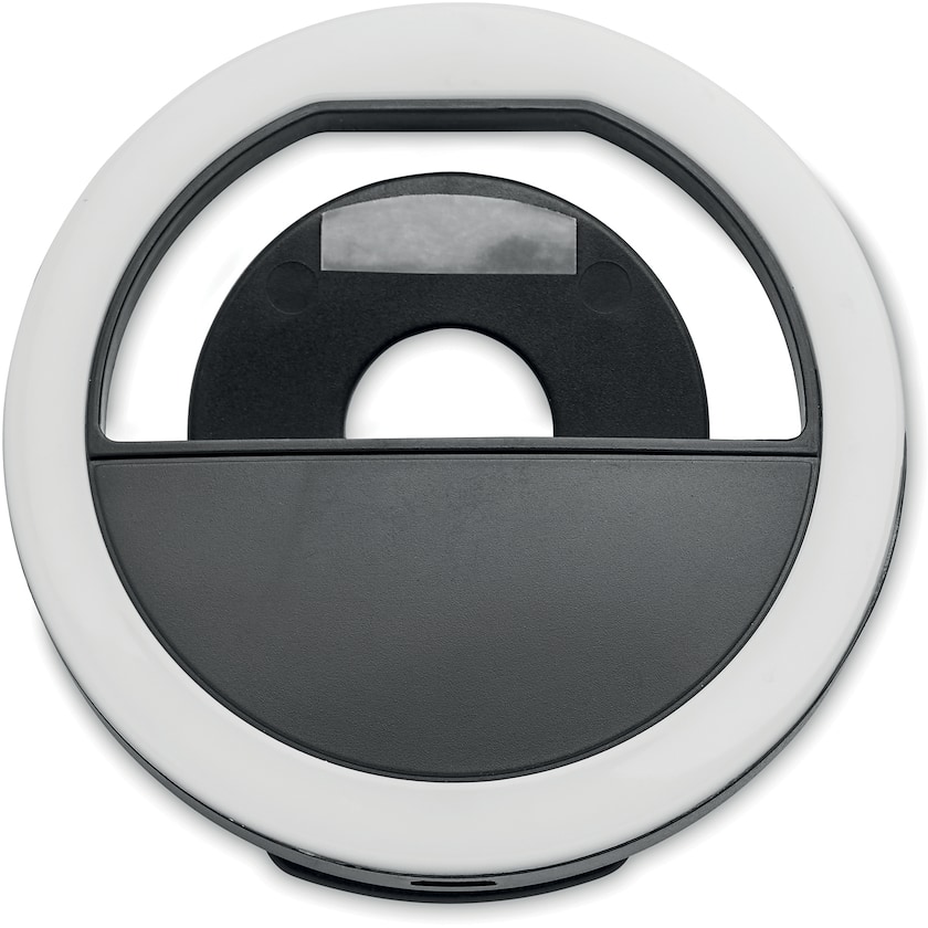 Anneau lumineux pour téléphone portable. Le Delmy comporte 28 lampes LED pour un éclairage parfait pour vos photos et films. Choisissez entre trois intensités lumineuses. L'anneau est alimenté par une batterie rechargeable.