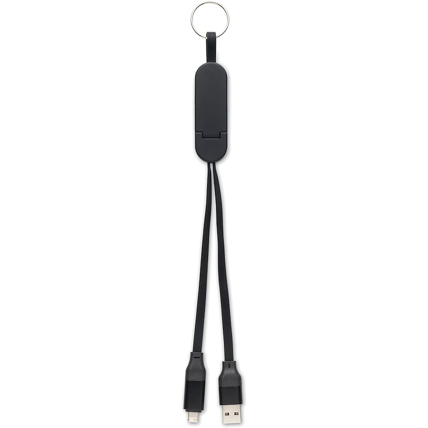 Câble de charge 60W en ABS recyclé. Fonctionne également comme support mobile. Entrée : 2 en 1 Type-C et Type-A. Sortie : Type-C et micro-B (broche 2 en 1).