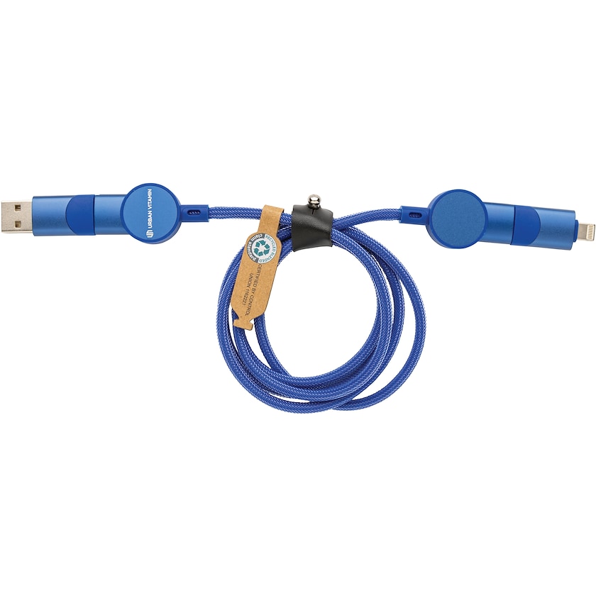 Câble de recharge rapide en matériau recyclé. Le câble de recharge mesure 120 cm et propose cinq prises. L'intégralité du câble est fabriquée dans un matériau recyclé. Livré dans une jolie boîte cadeau.