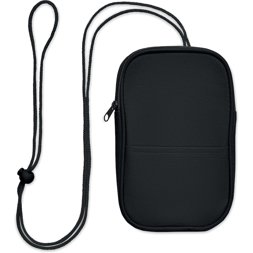 Étui de téléphone portable abordable fabriqué à partir de matériaux recyclés. Le sac possède un compartiment principal zippé. La bandoulière est réglable.
