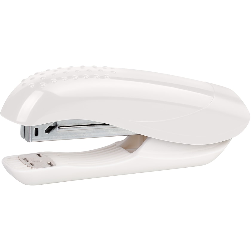 Agrafeuse capable d'agrafer 20 feuilles. Peut utiliser des agrafes de type 24/6 et 26/6. L'impression se fait sur la face supérieure de l'agrafeuse.