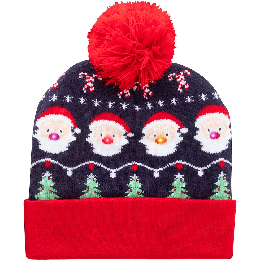 Bonnet de Noël avec 6 lumières LED. Les lumières LED offrent trois modes d'éclairage différents. Piles incluses.