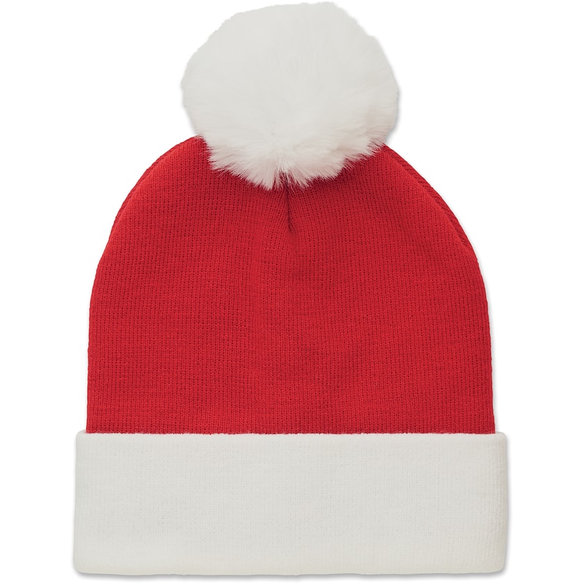 Bonnet de Père Noël tricoté avec un grand pompon. La personnalisation se fait par broderie. Que Noël arrive !