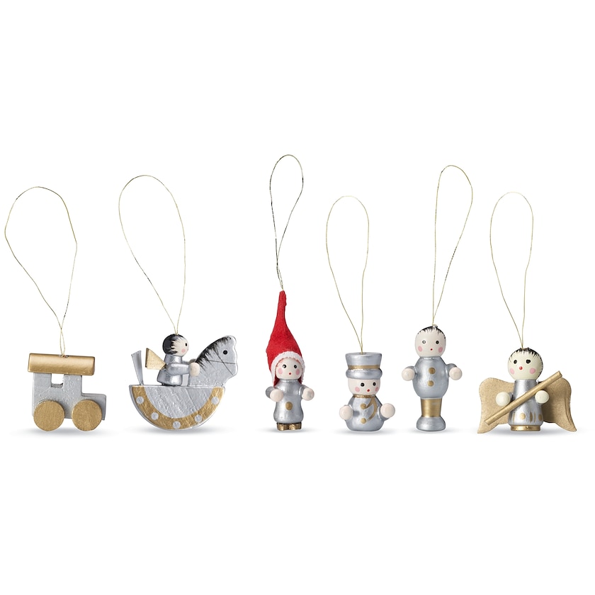 Set de 6 décorations de Noël en bois. Livré dans une belle boîte cadeau au couvercle transparent. La personnalisation est effectuée par impression digitale sur une étiquette apposée sur le couvercle.