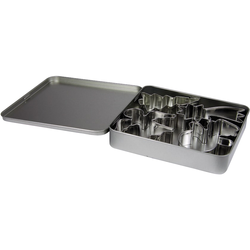 Set de 4 emporte-pièces à biscuits dans une boîte en étain. La personnalisation est effectuée par impression photo en quadrichromie sur le couvercle de la boîte. Un joli cadeau pour les fêtes de Noël!