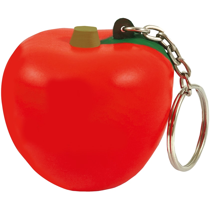 Balle anti-stress équipée d'un porte-clés en forme de pomme. L'impression est de qualité supérieure, ce qui signifie que l'impression restera même après beaucoup de pétrissage.