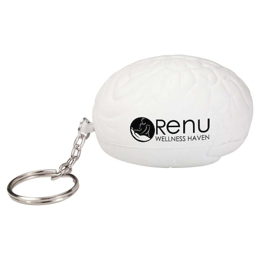 Balle anti stress en forme de cerveau. La balle anti stress est équipée d'un anneau porte-clés pour permettre de l'accrocher à son trousseau de clés. L'impression de la personnalisation est de la plus haute qualité.
