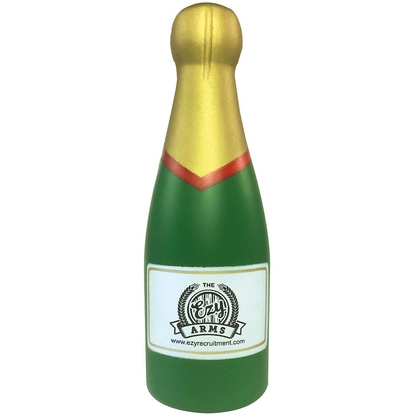 Balle anti-stress en forme de bouteille de champagne. Parfait lorsque vous avez quelque chose à fêter! L'imprimé reste intact, même après une longue utilisation.