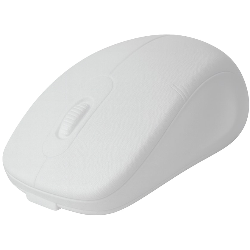 Balle anti-stress conçue comme une souris d'ordinateur gris clair. L'impression est d'excellente qualité et reste visible pendant toute la durée de vie de la balle anti-stress.