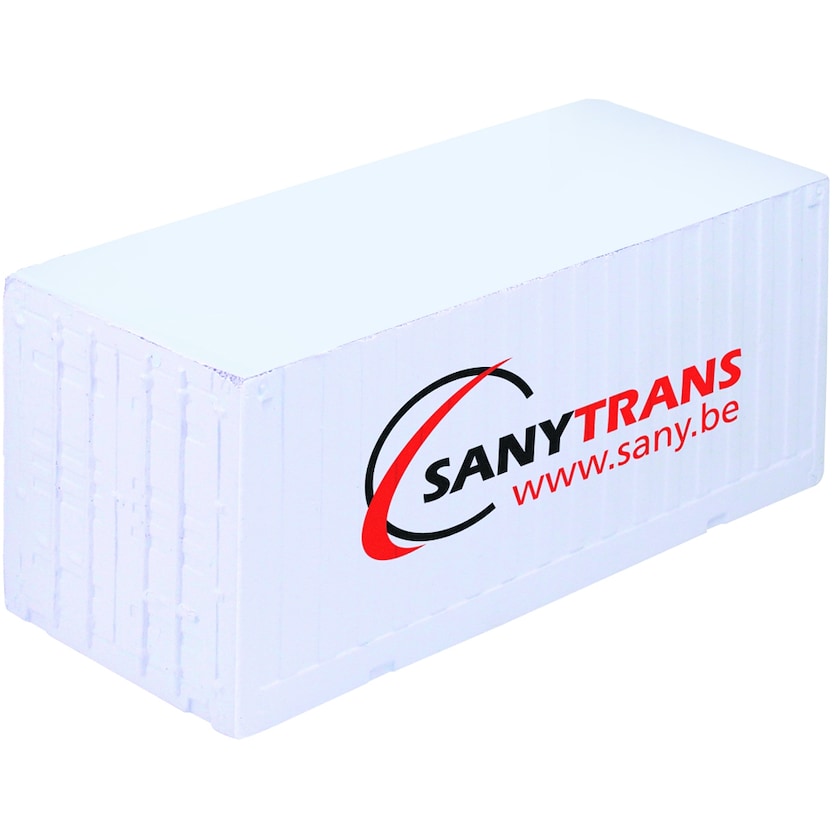 Balle antistress personnalisée en forme de container. Un forme amusante, idéale pour les entreprises du secteur de la logistique. Choisissez parmi plusieurs couleurs variées.