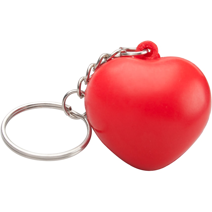 Petite balle anti-stress en forme de cœur sur un porte-clé. Uniquement avec impression 1 couleur.