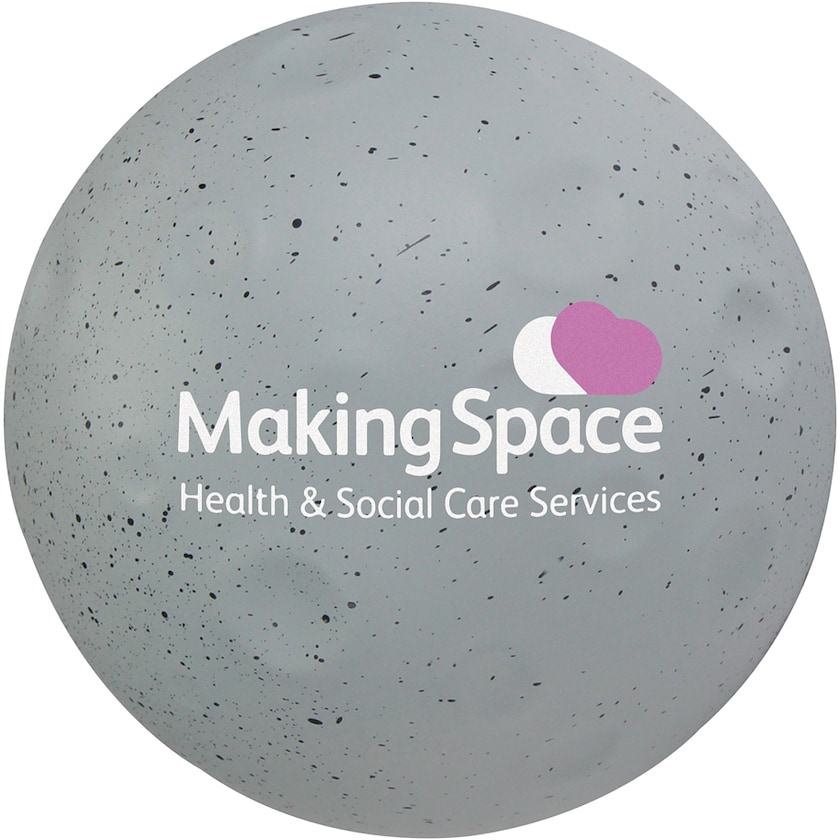 Balle anti-stress pour les passionnés de l'espace. Cette balle anti-stress a la forme de la lune. L'impression est d'une qualité exceptionnelle et restera intacte pendant toute la durée de vie de la balle.