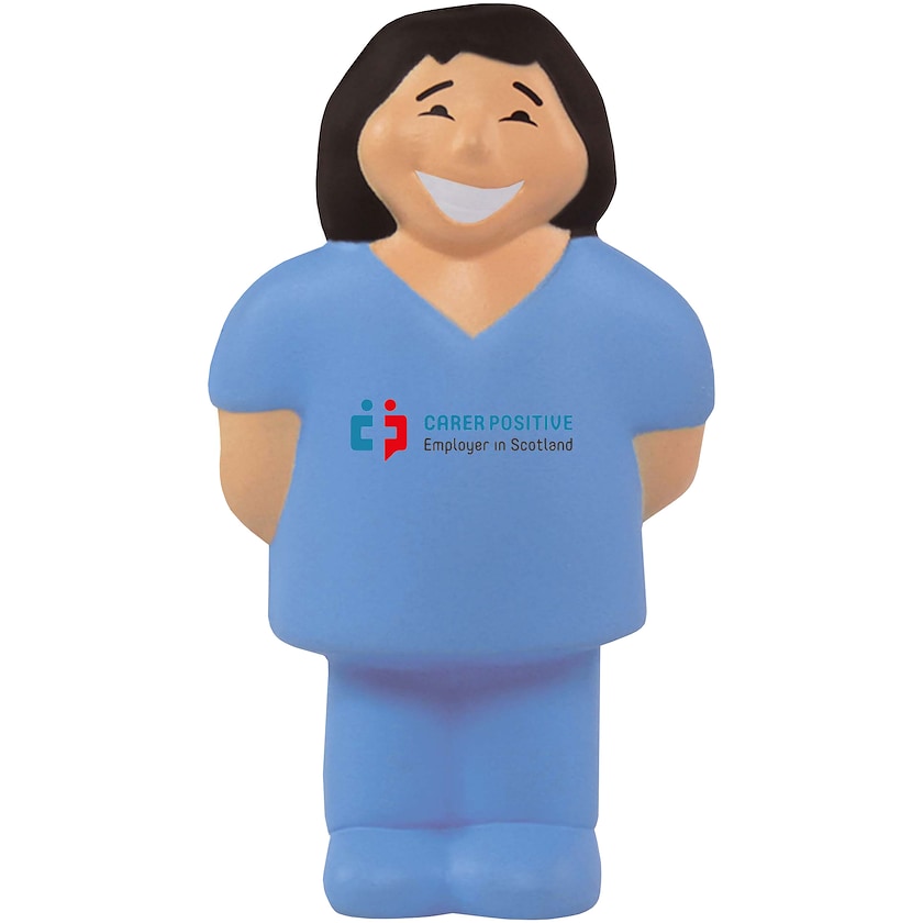 Balle anti-stress en forme d'infirmière. Un produit publicitaire parfait pour vous qui travaillez dans les domaines du soin ou de la santé. Fait une bonne publicité à votre entreprise tout en aidant à relaxer ses muscles.