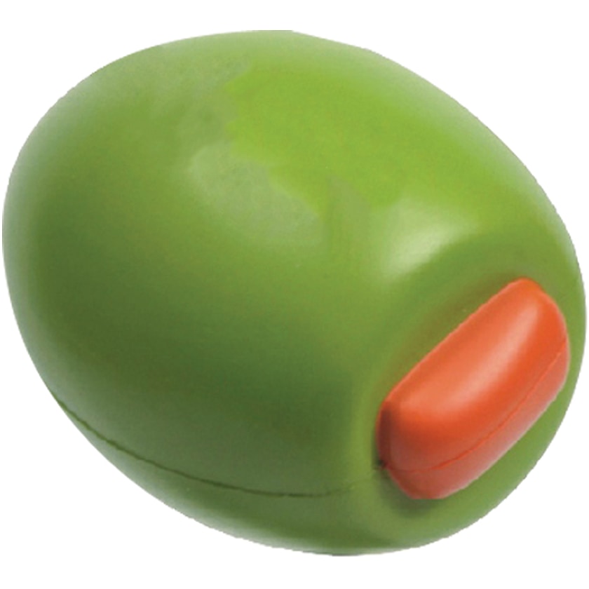 Balle anti-stress en forme d'olive. Une balle anti-stress qui évoque la bonne chère et l'Europe du Sud. L'impression conserve la plus haute qualité possible.