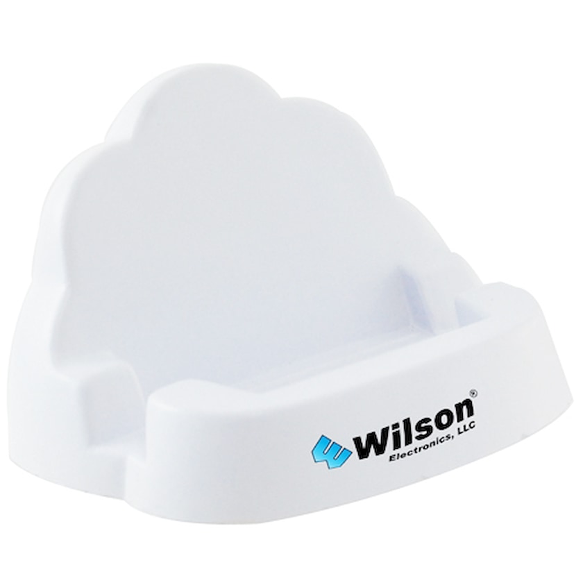 Balle anti stress en forme de nuage pouvant également servir de support pour mobile. D'une pierre deux coups ! L'impression de la personnalisation est de très haute qualité.