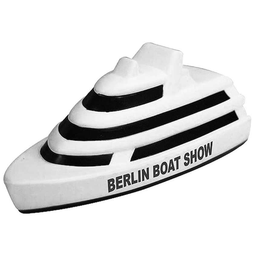 Balle anti stress personnalisable en forme de méga yacht. L'impression de la personnalisation est de la plus haute qualité, ce qui lui permet de résister à de longues heures de pétrissage sans s'estomper.