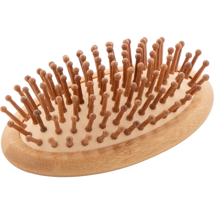 Brosse à cheveux en bambou. Le fond et les pointes sont en bambou. Une belle brosse à cheveux qui tient bien dans la main.