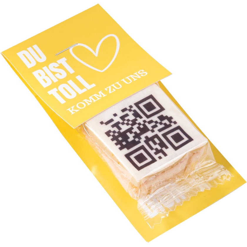 Gâteau personnalisé par impression numérique attaché à une carte. Disponible en plusieurs parfums. L'impression est réalisée avec du colorant caramel sur une fine couche de sucre. La carte, de 178 x 55 mm, est imprimée numériquement selon vos souhaits.
