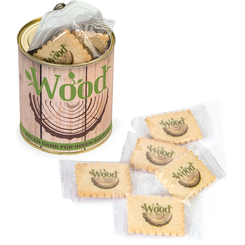 24 délicieux biscuits au beurre avec impression en 4 couleurs dans une boîte métallique. Les biscuits au beurre sont délicieusement croustillants et sont emballés individuellement. Le prix d'impression se réfère à l'impression sur tous les biscuits ainsi que sur la boîte. Un cadeau parfait pour les amateurs de gâteaux.