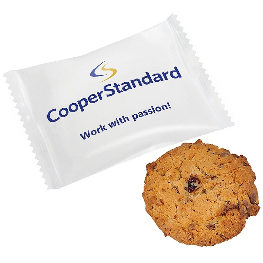 Délicieux cookie aux goûts orange et chocolat. Livré dans un flowpack personnalisé suivant vos souhaits. Un cadeau apprécié sur les salons et les conférences!