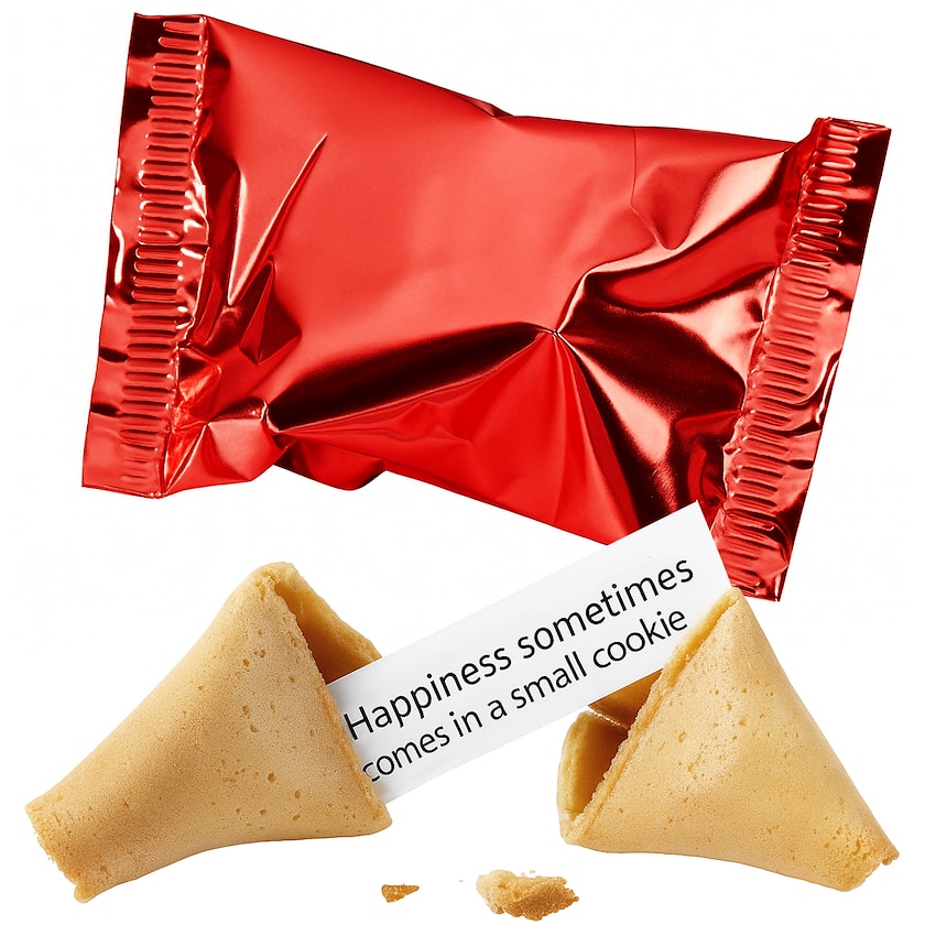 Biscuits chinois dans un emballage flowpack personnalisé. Vous choisissez vous-même les 5 messages différents à placer dans les biscuits. Chaque message peut comporter jusqu'à 125 caractères, espaces inclus. Commandez vos biscuits chinois avec vos messages personnalisés chez Axon Profil ! L'impression est appliquée directement sur le flowpack.