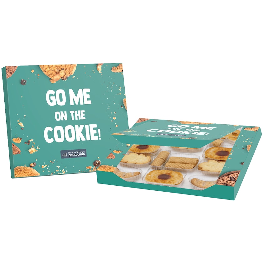 Petits biscuits Bahlsen dans un emballage personnalisé. Contient un mélange délicieux de petits gâteaux. La personnalisation est réalisée suivant un processus climatiquement neutre.