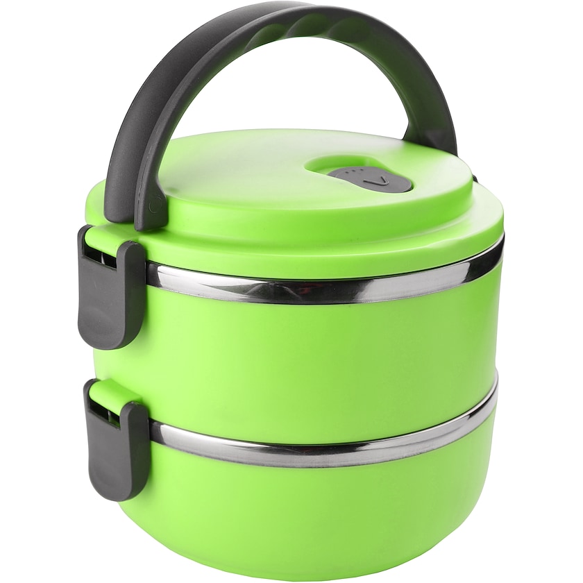 Boîte alimentaire en acier inoxydable avec deux compartiments. Grâce à ses deux compartiments, on peut facilement emporter deux plats différents avec soi. La boîte possède une contenance totale de 140 cl. Commandez vos boîtes à lunch personnalisées chez Axon Profil!