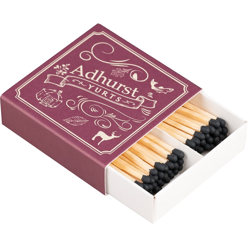 Boîte d'allumettes à deux compartiments avec 70 allumettes. Une boîte d'allumettes unique pour des entreprises uniques. L'impression est réalisée en quatre couleurs maximum selon la palette Pantone et en CMJN. Vous avez le choix entre 16 couleurs de bouts et 3 couleurs de bois.