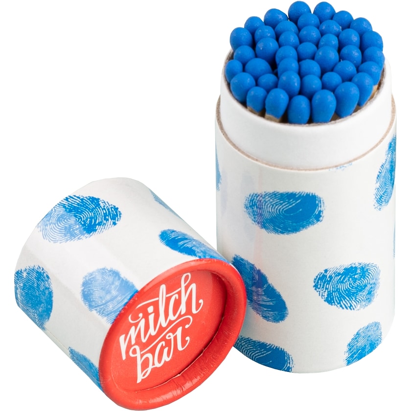 Une boîte d'allumettes très originale, en forme de cylindre. L'extérieur est entièrement personnalisable. L'impression en quatre couleurs maximum est effectuée suivant l'échelle Pantone, puis en CMYK. Vous pouvez choisir librement parmi 16 couleurs d'embouts différentes et 2 couleurs de bois différentes.