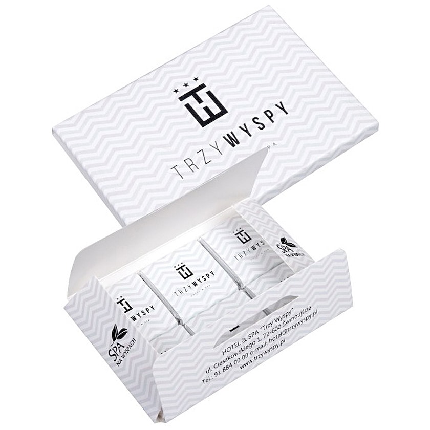 Boîte contenant 6 carrés de chocolats de 5 grammes. Les chocolats sont disponibles avec papier d'aluminium argenté, doré, bleu, rouge ou noir. La boîte tout comme le papier d'aluminium est personnalisé par impression photo 4 couleurs suivant vos souhaits.