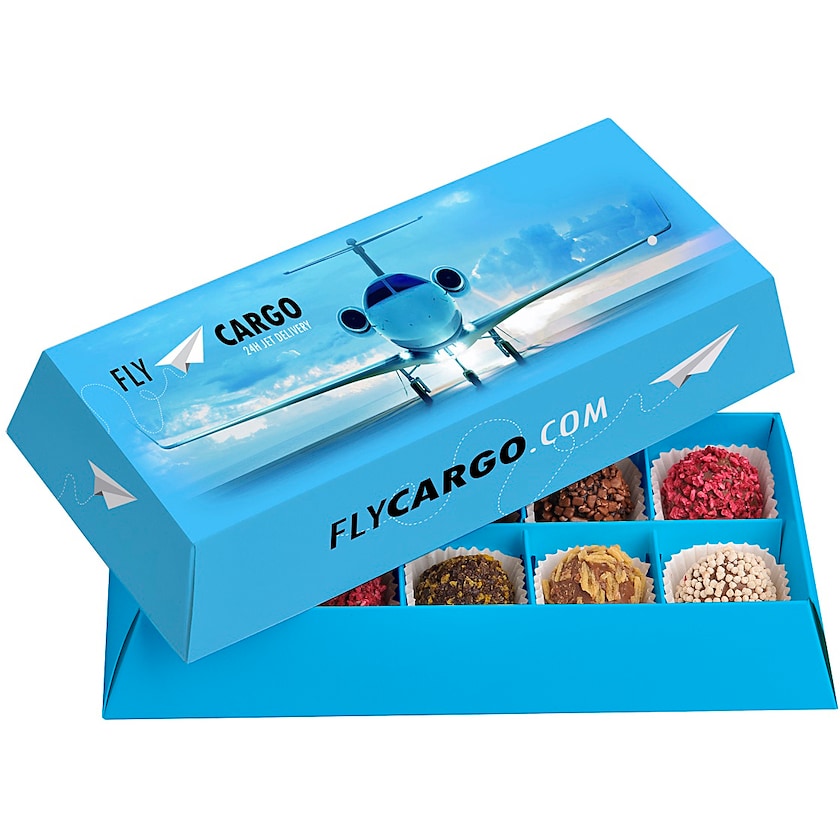 Boîte de 10 chocolats pralinés de haute qualité. Chaque chocolat praliné pèse environ 8,5 grammes. Les goûts sont mixtes. L'ensemble de l'emballage est personnalisé par impression 4 couleurs. Une boîte de chocolats pralinés haut de gamme de la plus haute qualité!