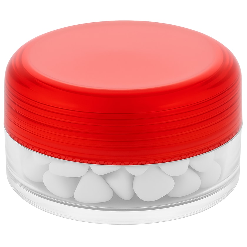 Petit pot contenant 12 grammes de comprimés de menthe sans sucre. L'impression se fait sur le couvercle. Livraison rapide.