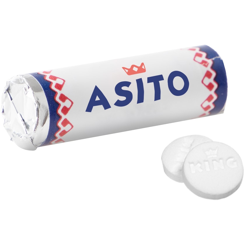Petit rouleau rempli de 9 comprimés rafraîchissants à la menthe. L'ensemble du papier entourant le rouleau est imprimé selon vos souhaits.