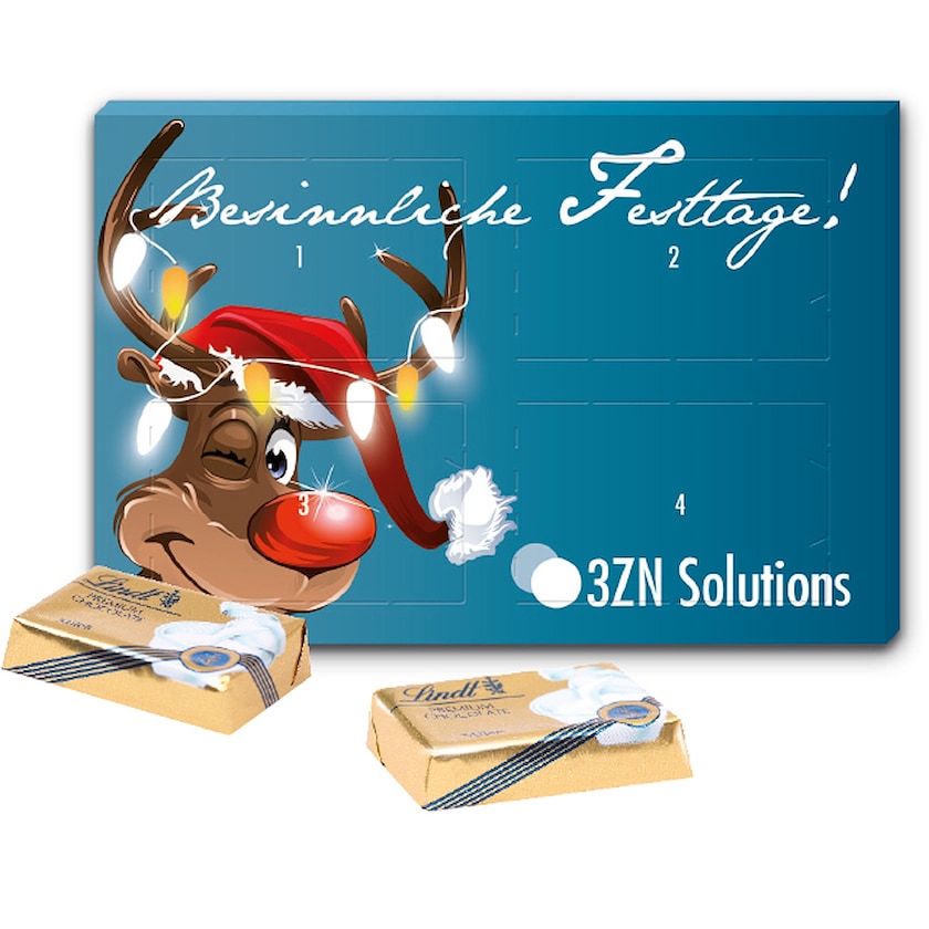 Super petit calendrier de l'avent rempli de chocolat Lindt. Le calendrier de l'Avent comporte quatre cases, une pour chaque dimanche de l'Avent. Téléchargez le modèle d'impression et créez votre propre design.