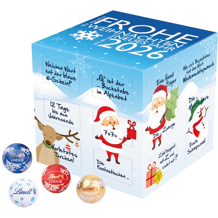 Calendrier de l'Avent en forme de cube entièrement en papier. Rempli de délicieux Lindor Lindt. Sans plastique, il s'agit donc d'un choix écologique. Le papier provient de forêts certifiées FSC.