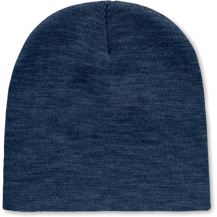 Bonnet tricoté en tissu écologique rPET. Le bonnet n'a pas de rabat. Le rPET est un matériau obtenu à partir de bouteilles PET recyclées, ce qui en fait un excellent choix écologique.