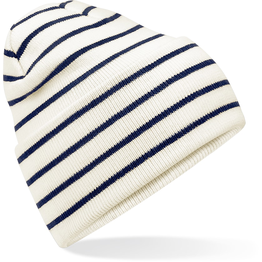 Chapeau rayé avec broderie. Le tissu est composé à 50 % d'acrylique et à 50 % de polyester recyclé certifié GRS. Un chapeau élégant qui se démarque des autres.