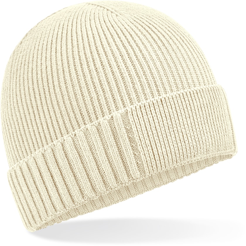 Bonnet en tricot côtelé avec surface spéciale en tricot fin pour la broderie. Le tissu est fabriqué à partir de coton biologique certifié OCS selon Control Union CU811033. Le tissu est léger et respirant, ce qui rend le chapeau très agréable à porter.