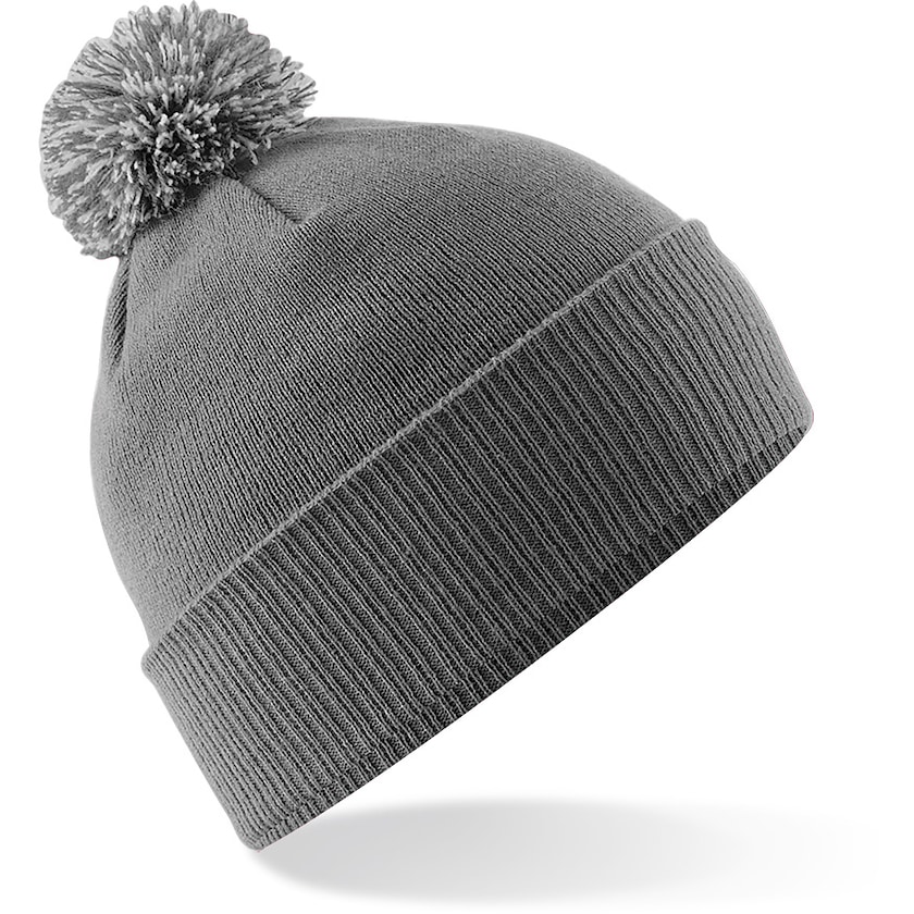 Joli beanie tricoté avec un gros pompon. Également disponible en version modèle enfant.