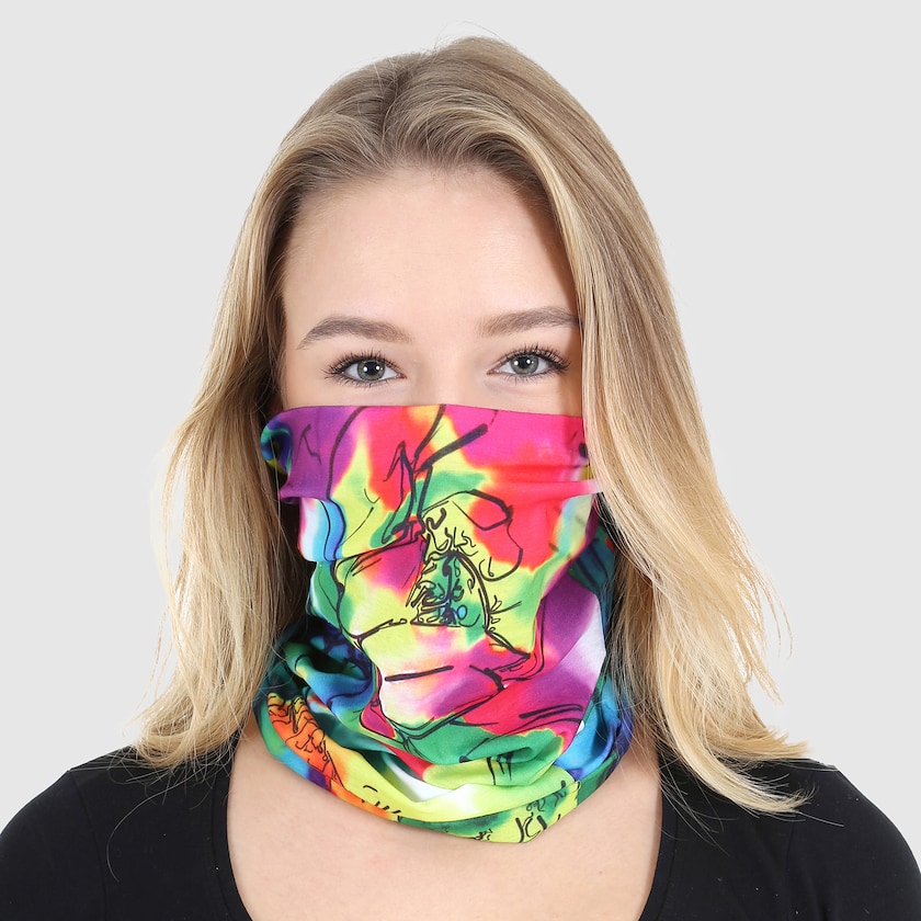 Écharpe multifonction avec impression photo 4 couleurs. L'écharpe peut être utilisée d'une multitude de façons, en écharpe, en bandana, en chauffe-mains, en bandeau ou en fouloir. Commandez une multi écharpe personnalisée chez Axon Profil!