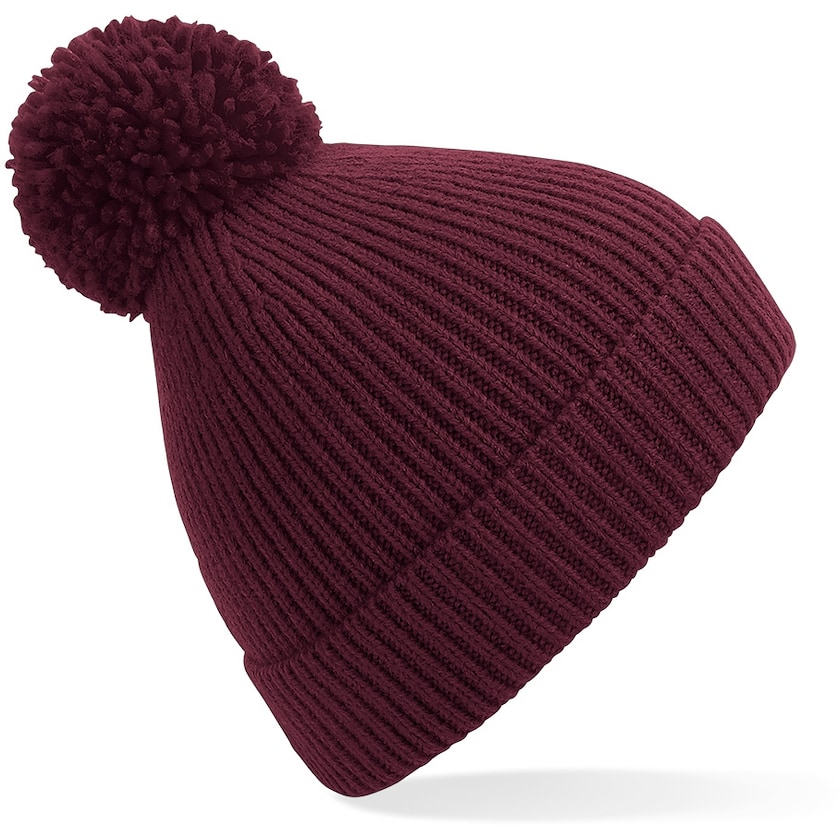 Bonnet nervuré de haute qualité avec un gros pompon. Le bonnet possède une couture une couture sophistiquée sur le haut pour un meilleur confort.