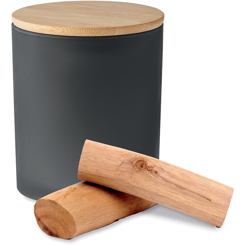 Grande bougie parfumée qui se décline en de nombreux parfums agréables. Choisissez entre la cannelle parfumée, la vanille, le bois de santal et le jasmin. La bougie parfumée est placée dans un verre dépoli avec un couvercle en bambou. La durée de combustion est de 46 heures complètes.