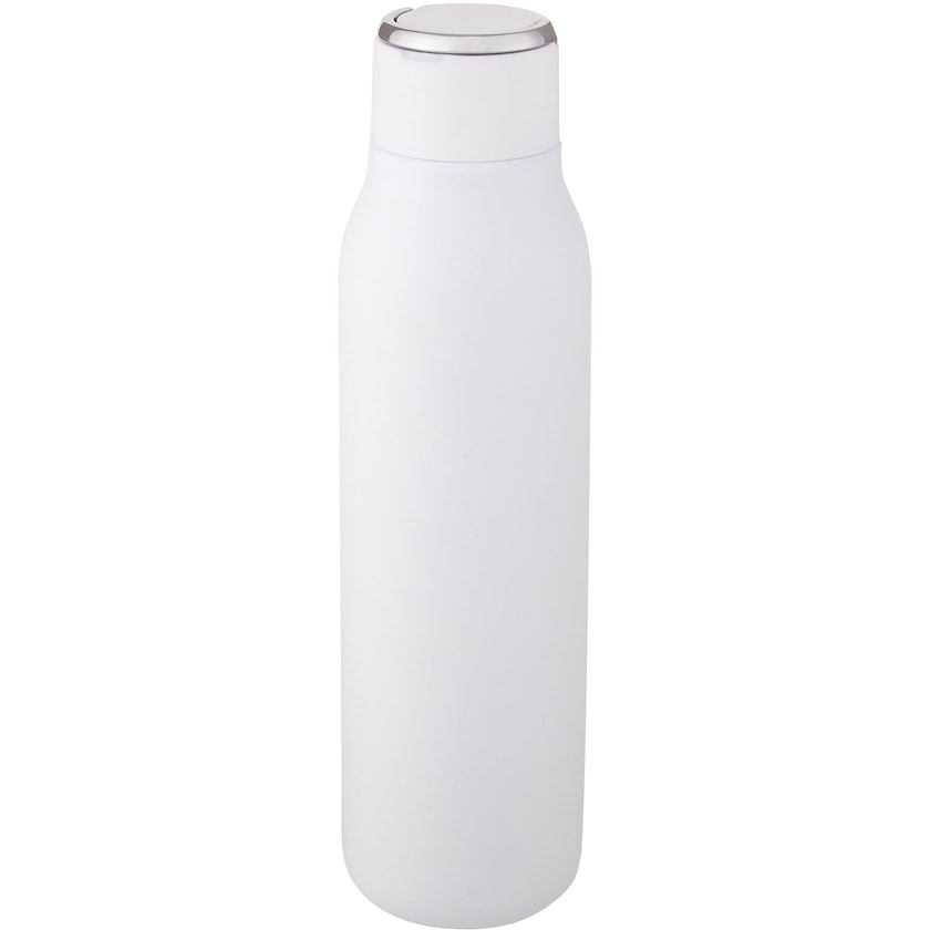 Gourde isotherme haut de gamme en acier avec extérieur mat. La gourde isotherme possède une isolation en cuivre qui permet de maintenir les boissons chaudes ou froides pendant plusieurs heures. Convient à la plupart des porte-gobelets de voiture. Lavage à la main recommandé. Livré dans un emballage cadeau en carton.